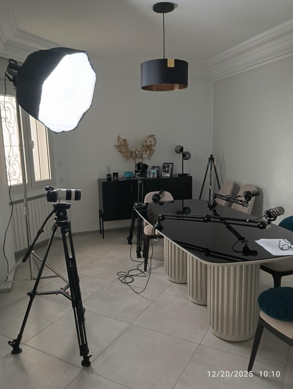 Vous cherchez un studio de podcast en Tunisie pour enregistrer votre émission ? Notre studio est équipé de technologies de pointe pour vous garantir un son de haute qualité. Que vous soyez un animateur solo ou que vous souhaitiez accueillir des invités, nous créons un environnement propice à des enregistrements clairs et impeccables.